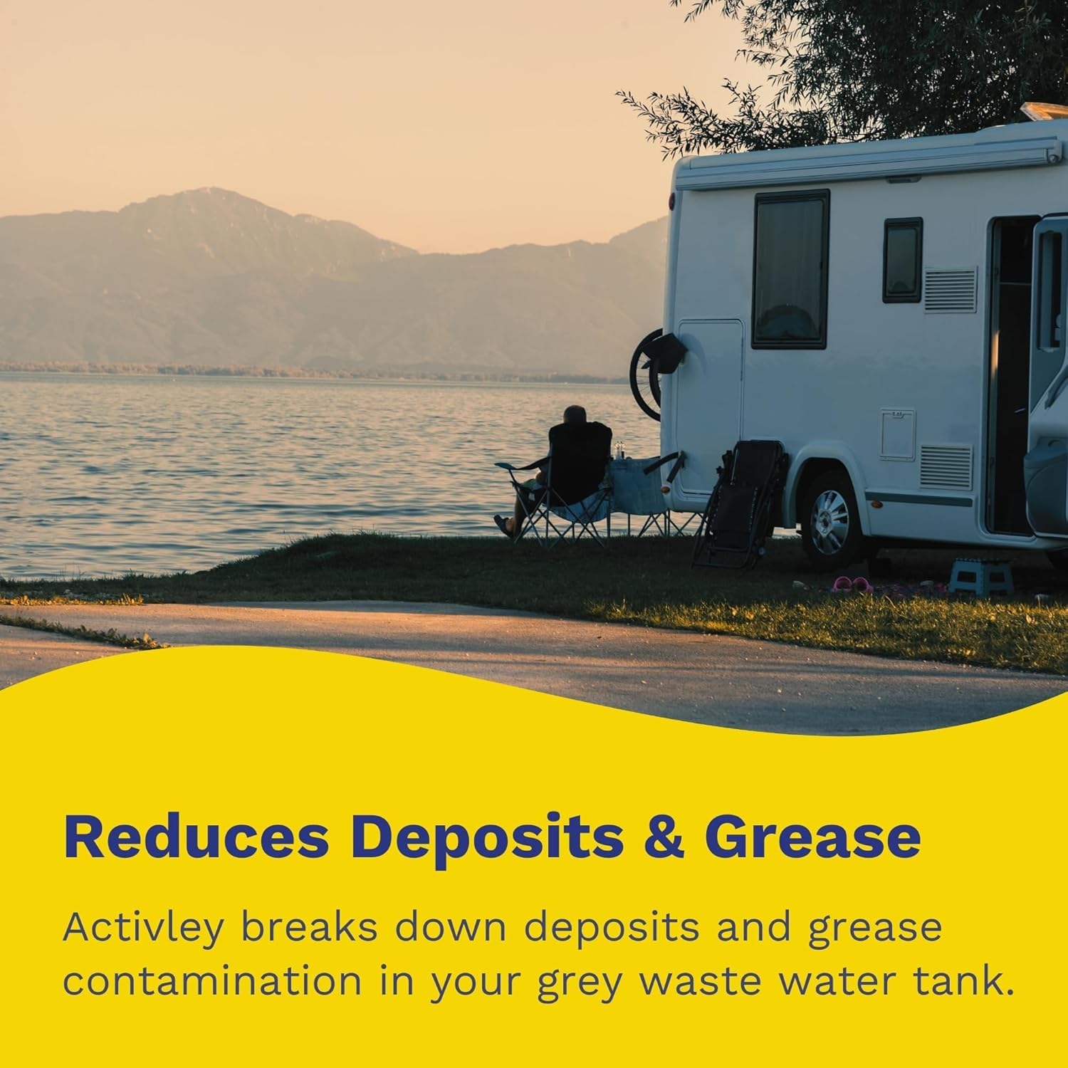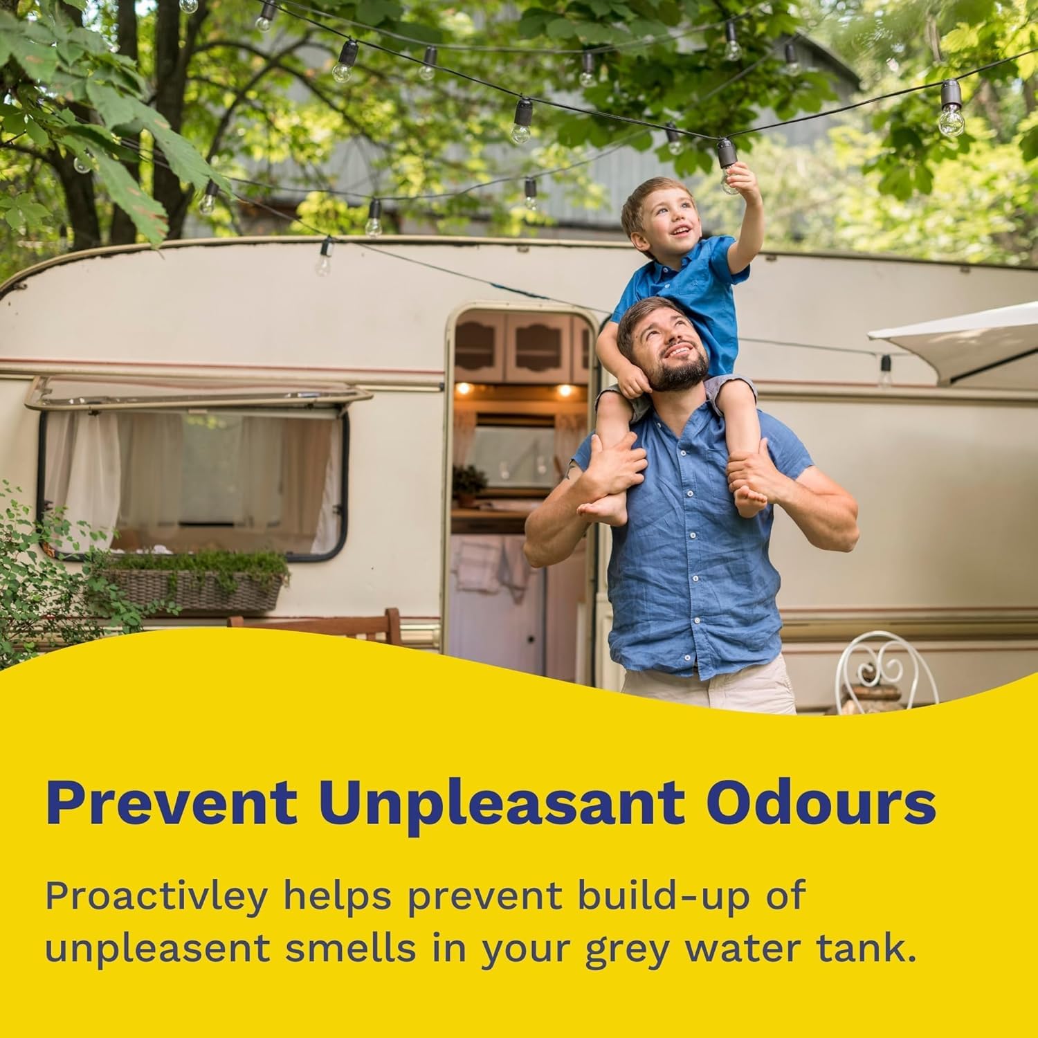 Proactively Prevents Waste Tank Odours. Treats your waste tank with every use. Keeps grey water fresher for longer and minimises unpleasant smells caused by stagnant water and grease deposits.