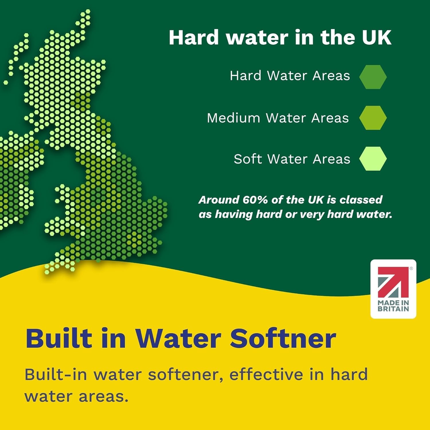 Powerful Grease-Busting Formula with Water Softener. Breaks down fats and grease before they hit the tank. Built-in water softener helps improve performance in hard water areas — protects your tank and pipes.