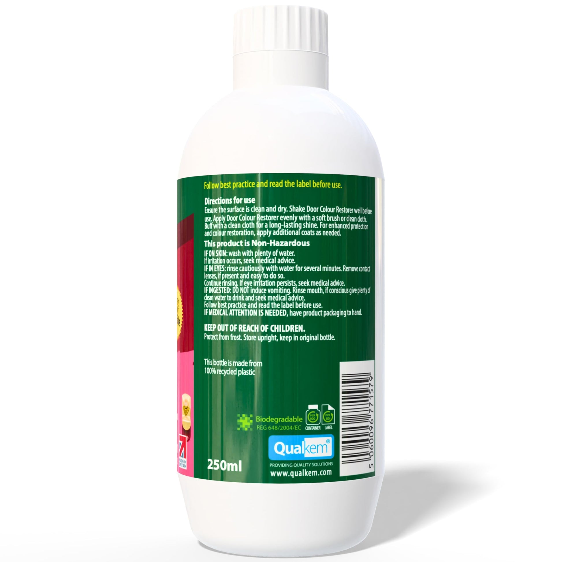 The advanced nano-technology formula penetrates plastic, vinyl and composite door surfaces to restore vibrancy, fill minor scratches and create a smooth, glossy, protected finish. Ideal for a wide range of outdoor surfaces including doors, window frames, garage trims and plastic garden furniture — you’ll regain the fresh-out-of-the-box look without replacement.