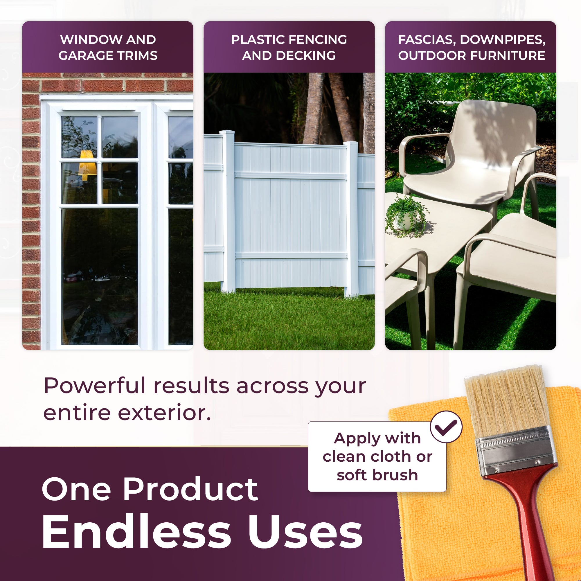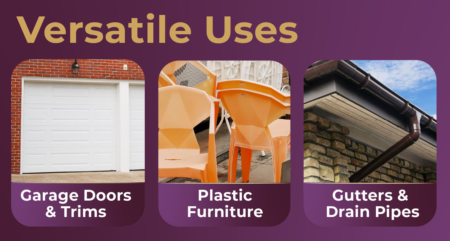 Ideal for uPVC, Composite & Plastic Surfaces. Suitable for use on doors, window frames, garage trims, plastic fascias, and even patio furniture. Compatible with white, black, anthracite grey, and all coloured finishes.