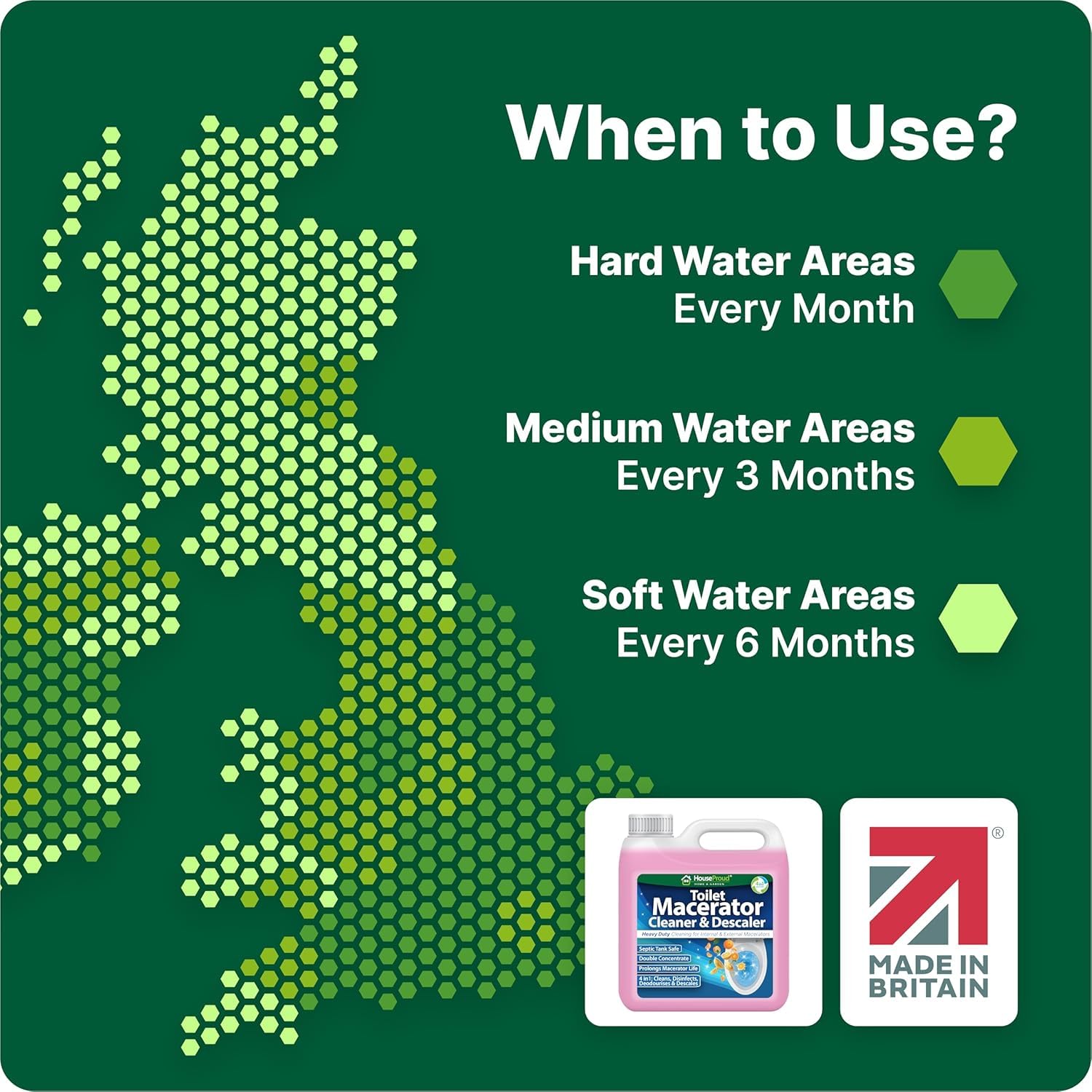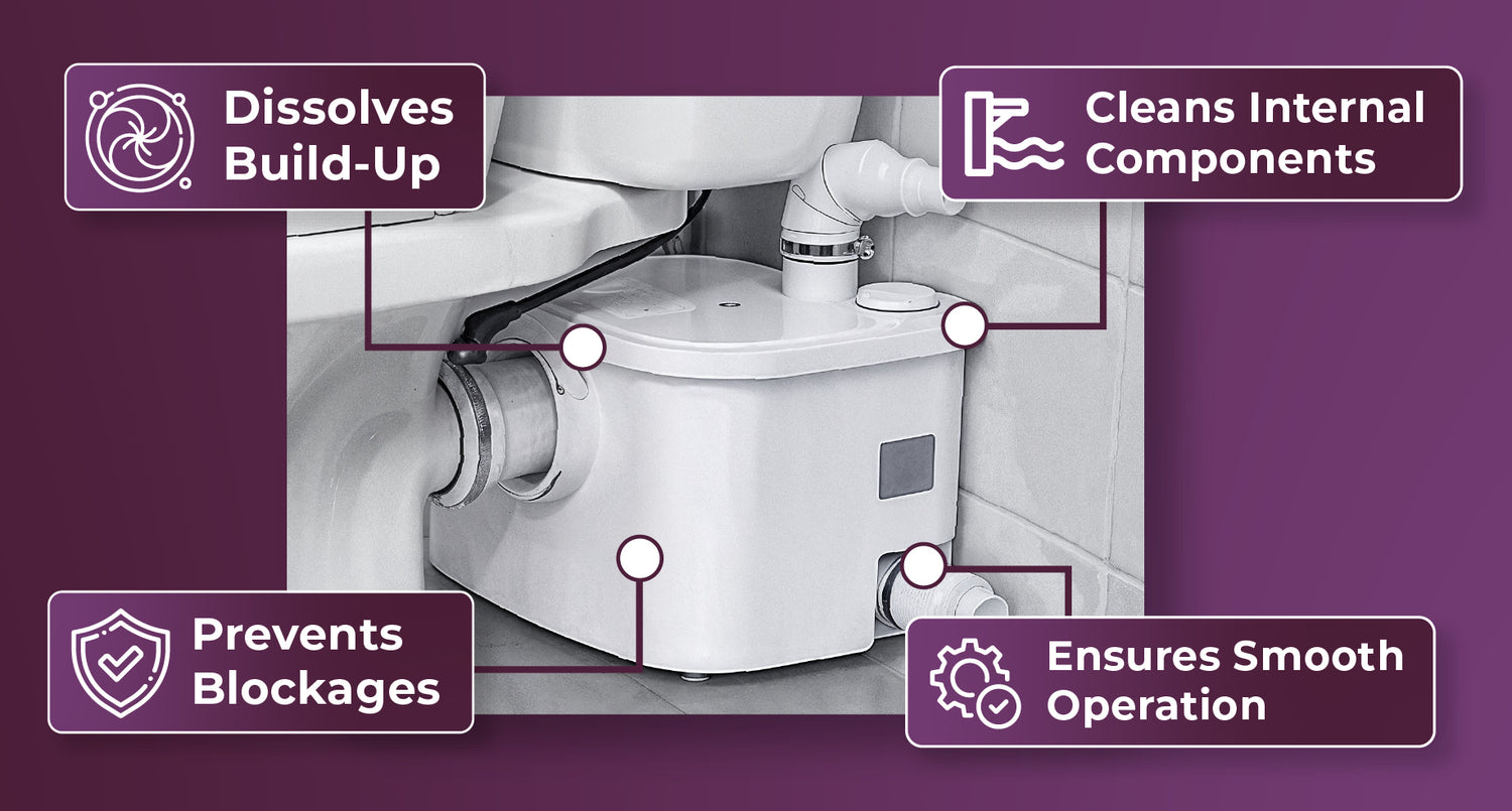 Unlike standard toilet cleaners, HouseProud is engineered for macerators and waste pumps. Regular use can help: