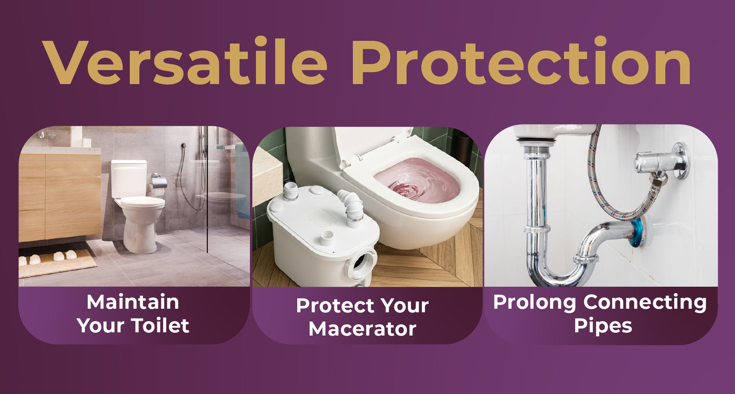 Safe for All Waste Pump Systems. Compatible with Saniflo, Thetford and other macerator toilets. Helps prevent clogs, odour build-up and blockages in waste pipes and grey water systems.