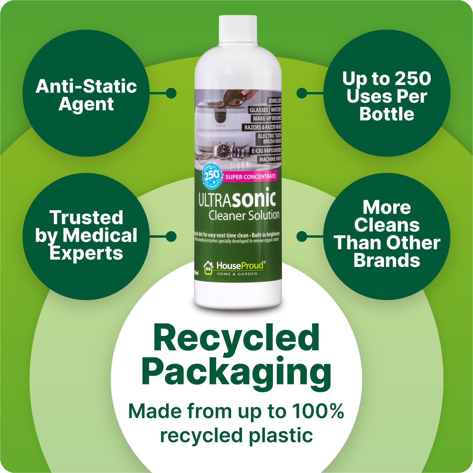 Looking after our planet is our top priority - that’s why every bottle of Ultrasonic Cleaner is made from reused plastic.